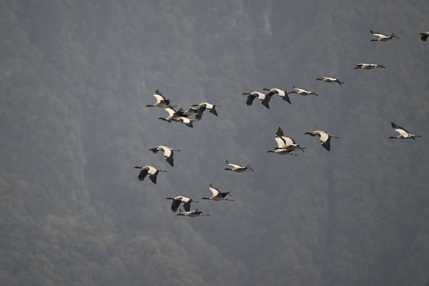 r近日,四川金阳百草坡省级自然保护区2025—2026年度黑颈鹤专项监测工作结束,监测数据显示,2025年11月16日至30日,保护区累计监测到迁徙过境黑颈鹤34批次422只;2026年3月8日至26日,监测到迁徙过境黑颈鹤47批次总计1265只,两次监测累计记录黑颈鹤1687只。